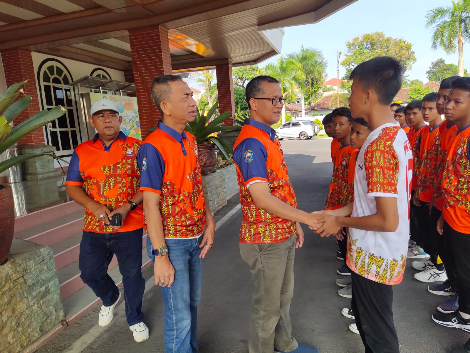 TRANSPARANN.COM, BATURAJA – Bertempat di halaman Pendopo Rumah Kabupaten, Pemerintah Kabupaten OKU, Minggu (10/9), menggelar pelepasan kontingen OKU untuk bertanding di ajang Gala Siswa Indonesia (GSI) Tingkat Provinsi Sumatera Selatan. Sebanyak 22 orang yang merupakan 18 pemain dan 4 official dilepas secara langsung Pj Bupati OKU, H Teddy Meilwansyah SSTP MM MPd yang diwakili Asisten II Setda OKU, H Hasan HD.