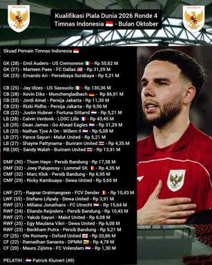 TRANSPARANN.ID โ Pelatih Timnas Indonesia, Patrick Kluivert, resmi merilis daftar 28 pemain yang dipanggil untuk menghadapi Kualifikasi Piala Dunia 2026 zona Asia ronde 4. Skuad Garuda akan menantang Arab Saudi dan Irak pada Oktober mendatang.