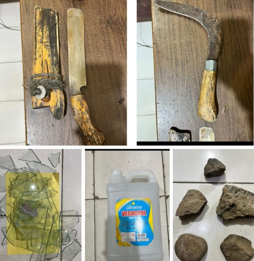 Akibat aksi tersebut, toko milik Ismiyati mengalami kerusakan berupa pecahnya kaca etalase dan rusaknya kunci pintu rolingdoor. Barang bukti yang berhasil diamankan dari HS antara lain satu bilah pisau golok, satu bilah pisau sabit tanpa sarung, serta lima batu yang digunakan untuk melempar.