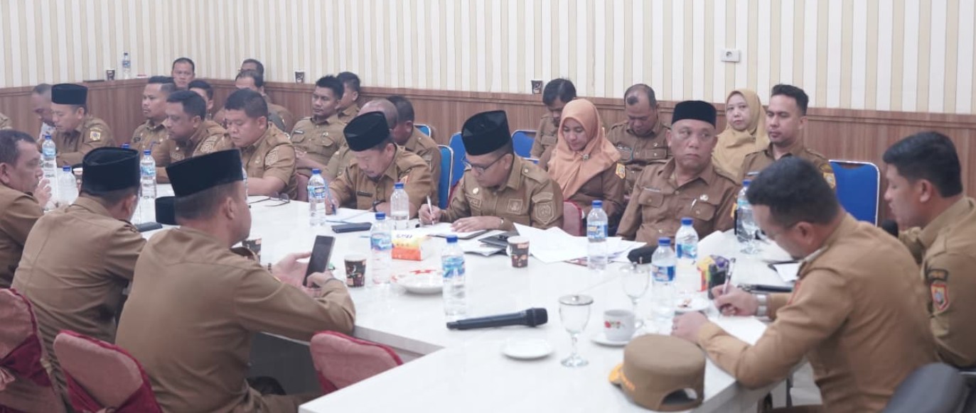 FOKUS DAN SERIUS: Suasana Rapat Koordinasi Pemkab Labusel yang dipimpin langsung oleh Bupati Fery Sahputra Simatupang. Dalam arahannya, Bupati meminta seluruh perangkat daerah menghilangkan sekat ego sektoral dan bergerak satu tujuan menyukseskan agenda pembangunan, termasuk persiapan Safari Ramadan.