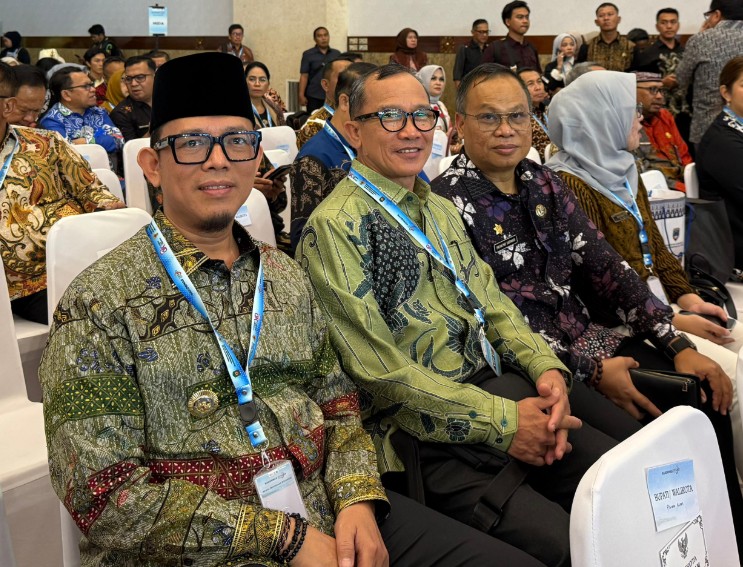 Bupati OKU, H Teddy Meilwansyah didampingi Asisten III Setda OKU, Romson Fitri dan Kadin Kominfo OKU, Priyatno Darmadi mengikuti Rakornas Tim Percepatan Akses Keuangan Daerah (TPAKD) 2025 di Balai Kartini, Jakarta, Jumat (10/10/2025).