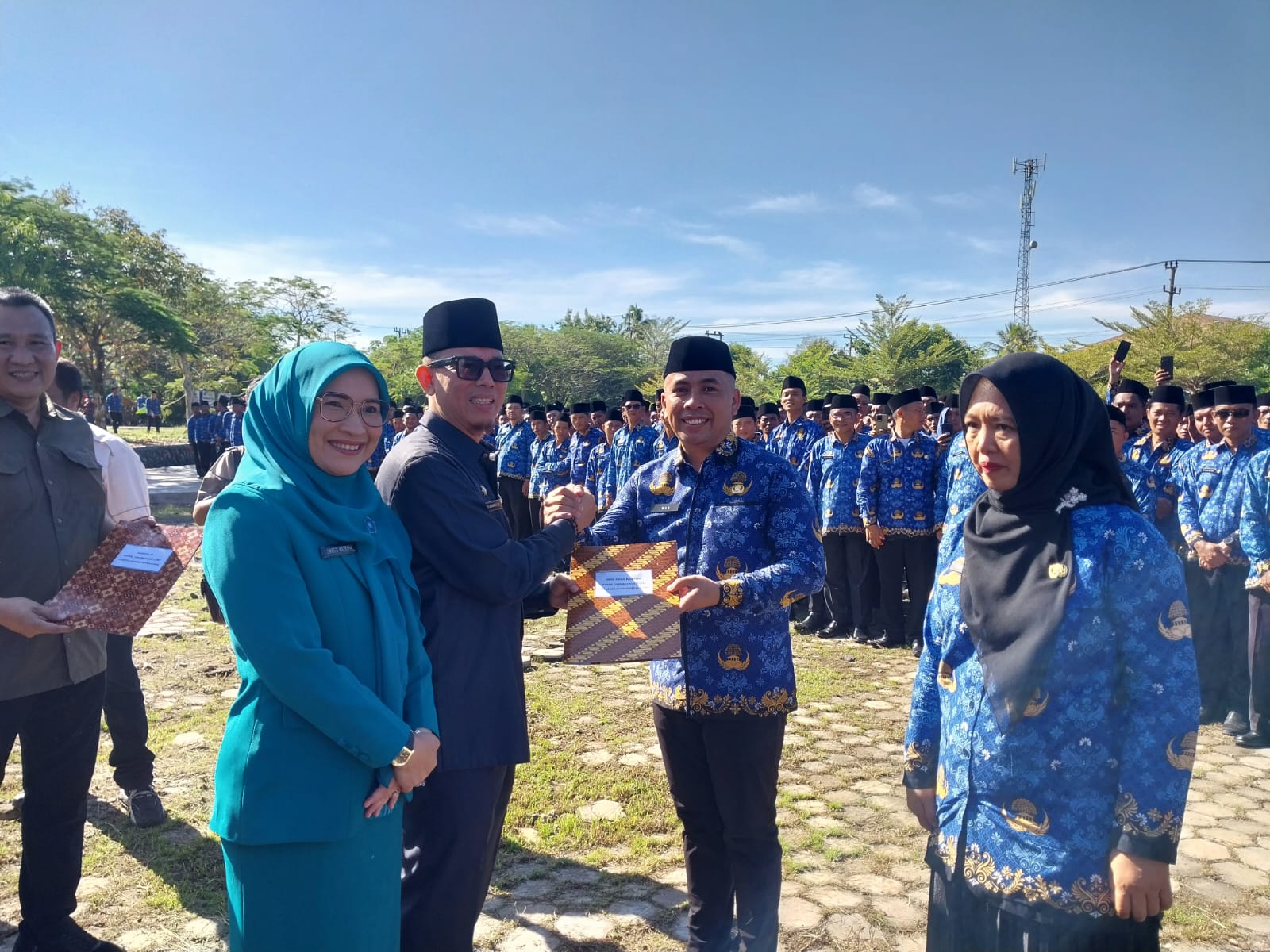 Bupati OKU, H Teddy Meilwansyah didampingi Ketua TP PKK OKU, Hj Zwesti Karenia Teddy, menyampaikan ucapan selamat kepada PPPK Paruh Waktu Kabupaten OKU.