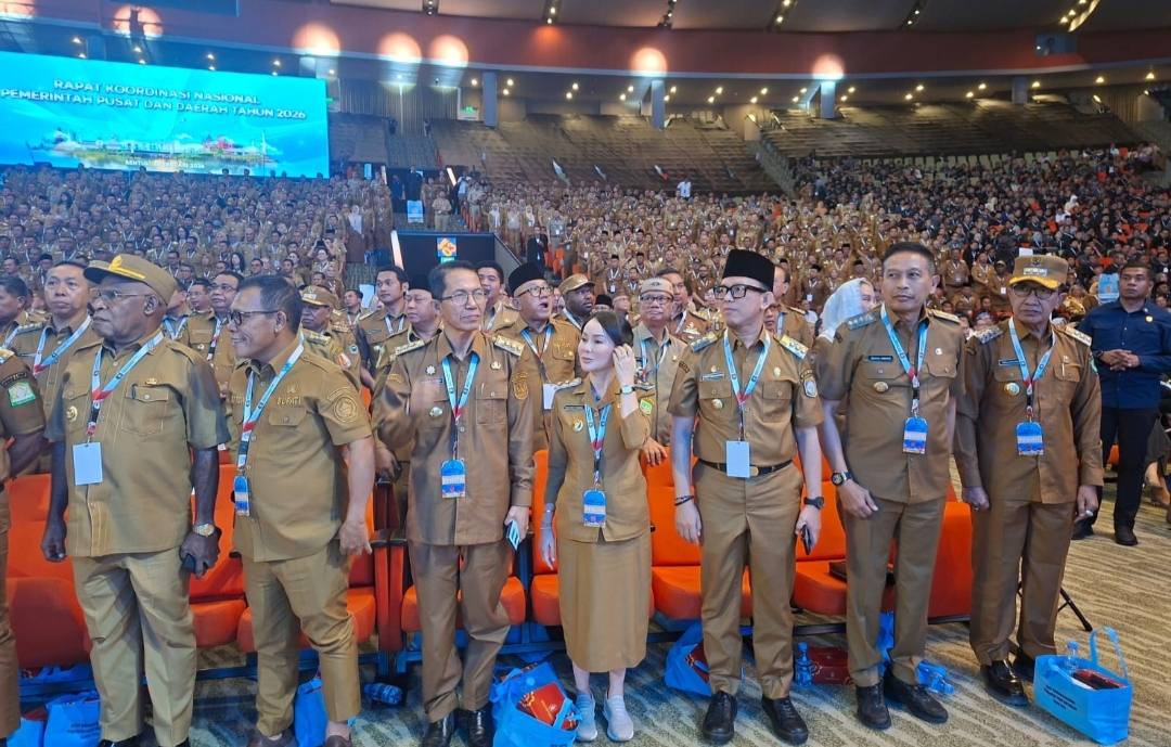 MENGHADIRI : Bupati OKU H Teddy Meilwansyah menghadiri Rakornas Pemerintah Pusat dan Daerah 2026 di Bogor. Bersama ribuan kepala daerah lainnya, Pemkab OKU berkomitmen menyukseskan program prioritas nasional demi kesejahteraan masyarakat.