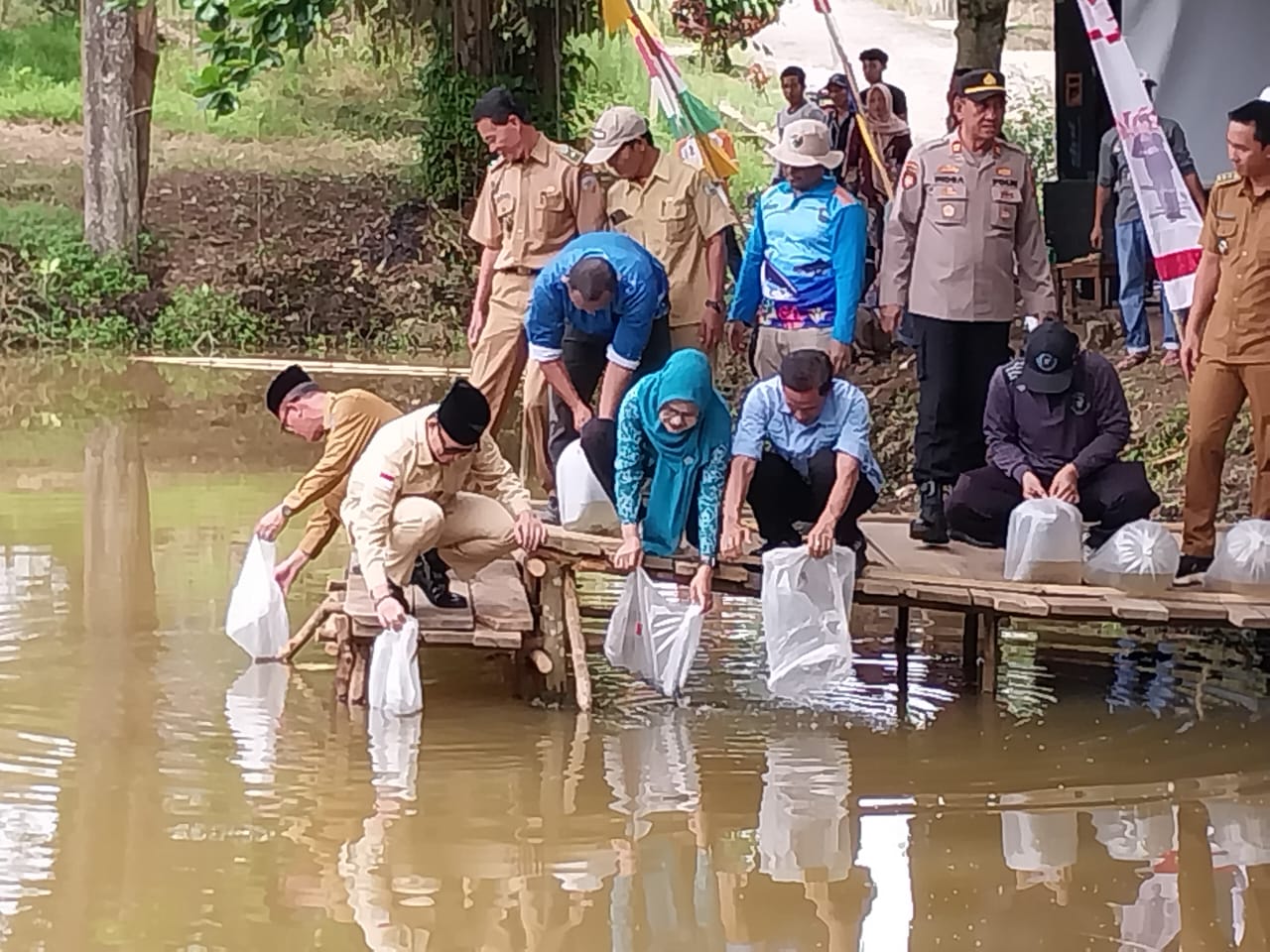 Sebelumnya, fokus pemerintah adalah sektor pertanian. Kini, sektor perikanan mulai digalakkan. Bupati menebar bibit di Sungai Blok L, Dusun Mekar Jati.