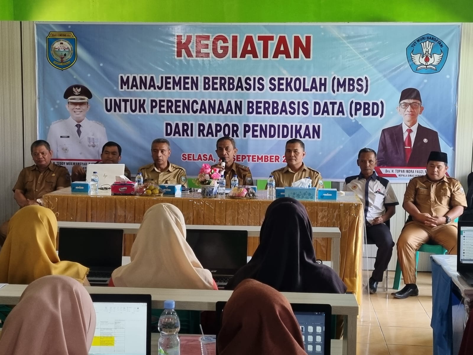 PBD 1 : Kepala Dinas Pendidikan Kabupaten OKU, Drs H Topan Indra Fauzi MM MPd memberikan arahan dalam Kegiatan MBS untuk perencanaan Berbasis Data (PBD) dari Rapor Pendidikan.