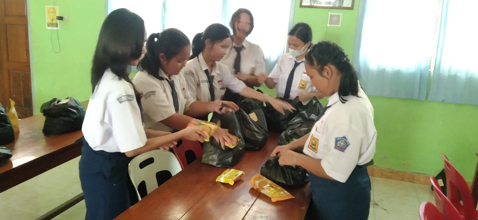 OSISKA SMP Xaverius Baturaja mengumpulkan bahan yang akan dibagikan.