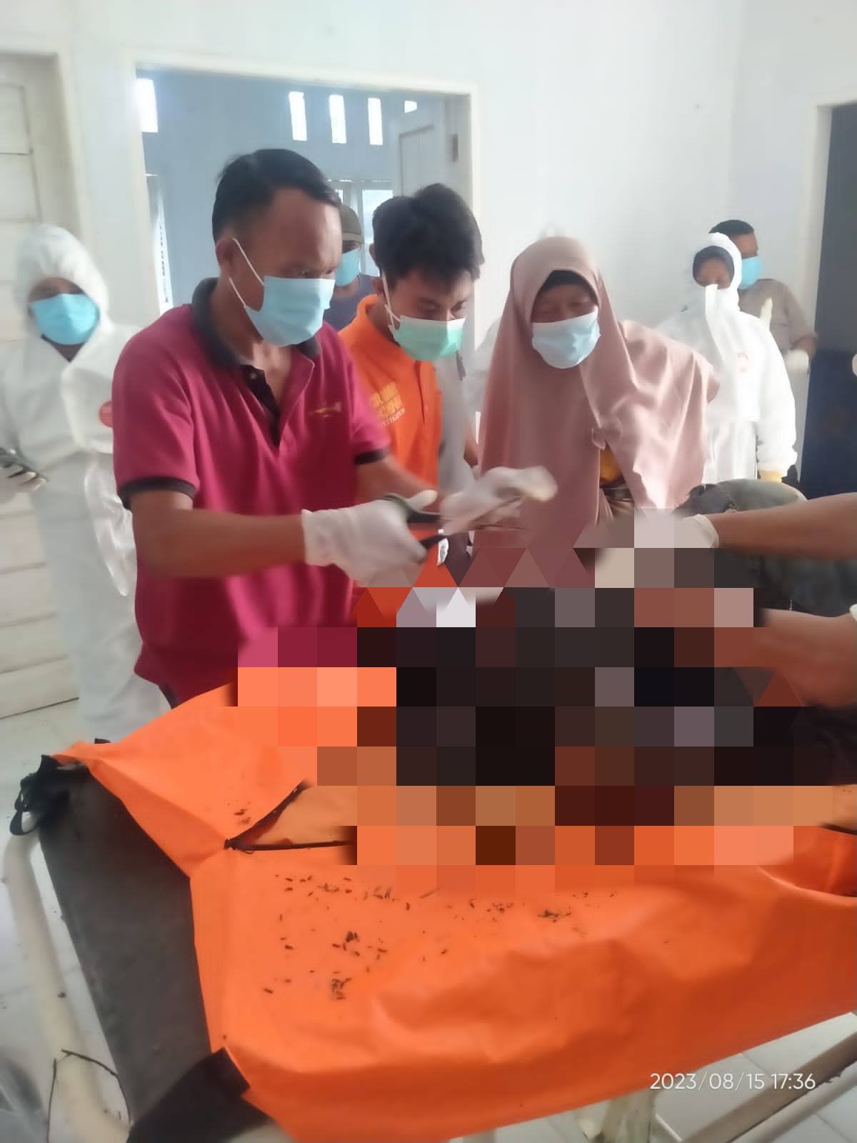 Jasad Bosar Hasibuan saat divisum petugas RSUD Aek Haruaya.
