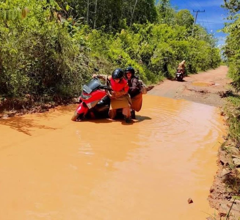 Berkaca pada kondisi tersebut, harapan mereka sederhana: realisasi anggaran daerah untuk perbaikan infrastruktur yang dapat mereka rasakan langsung. “Bukan kah kami membayar pajak untuk negara? Bukan kah ada anggaran daerah yang seharusnya bisa kami rasakan juga?” tanya mereka. Sebagai bukti nyata, foto-foto kondisi jalan yang mereka bagikan bukanlah hoaks, melainkan bentuk permohonan agar suara mereka akhirnya didengarkan. (bet)
