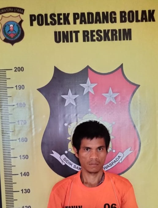 Pelaku Harmudin diamankan di Polsek Padang Bolak.