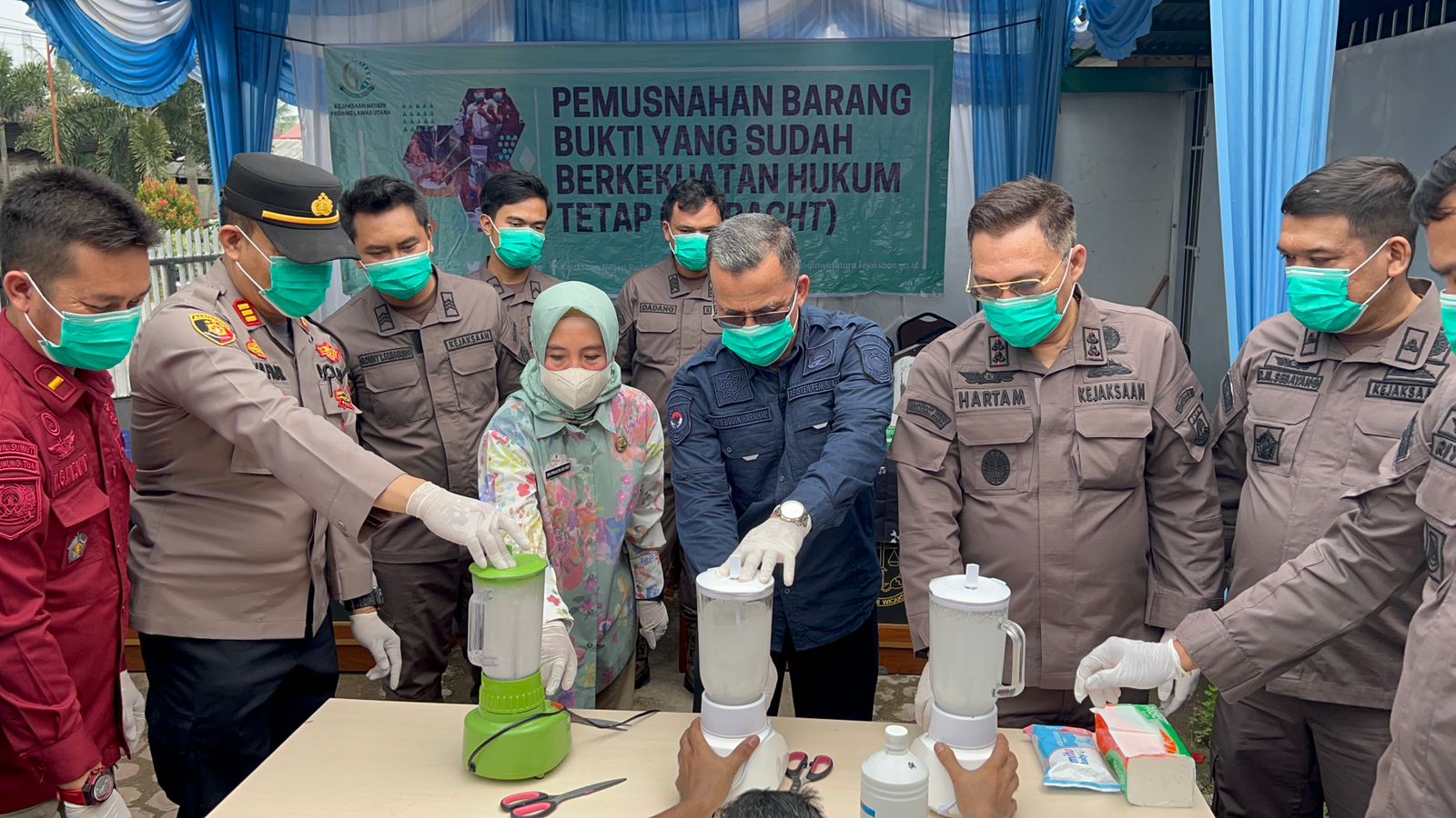 Kepala Kejaksaan Negeri Kabupaten Padang Lawas Utara, Dr Hartam Ediyanto SH MHum; Asisten 1 Pemerintahan Setda Paluta, Sarifuddin Harahap; Kepala Lapas Kelas III Gunungtua, Kapolsek Padang Bolak, AKP Zulfikar SH MH dan Kepala Puskesmas Gunungtua Ernita Manurung, bersama – sama musnahkan barang bukti.
