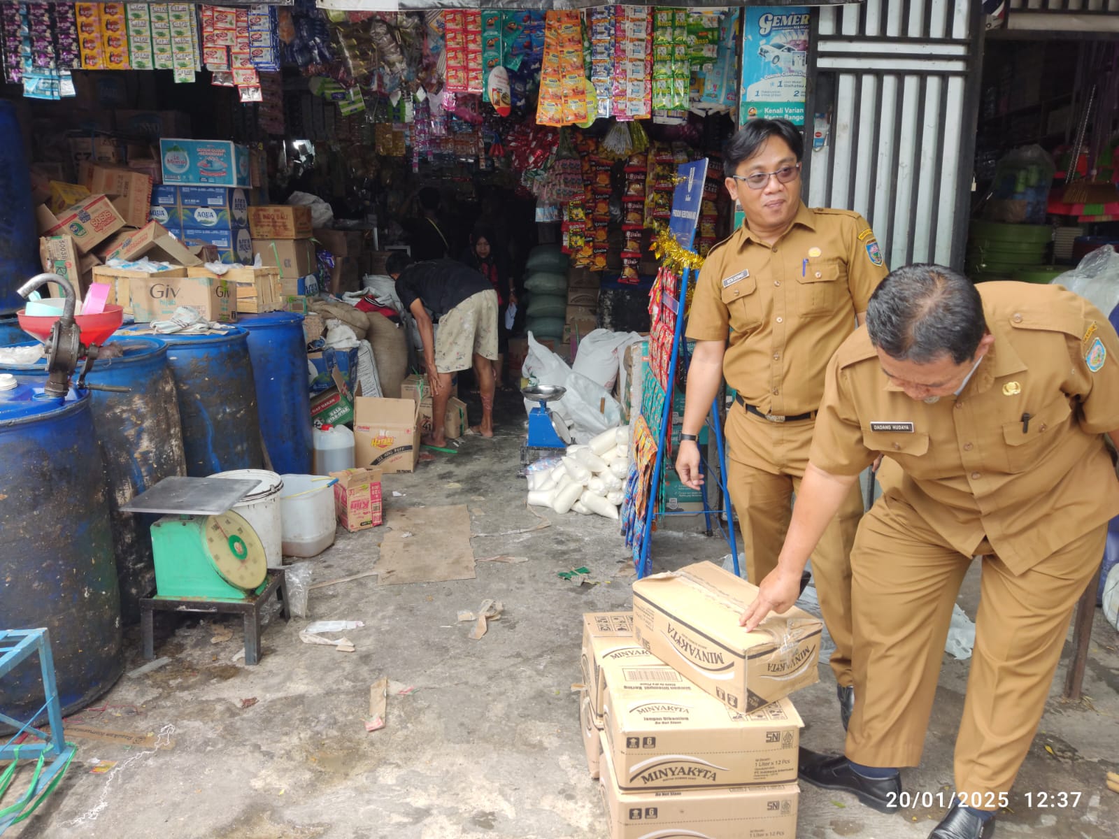 Kabag Perekonomian Setda OKU, Dadang Hudaya sidak di salah satu toko di Pasar Baru.