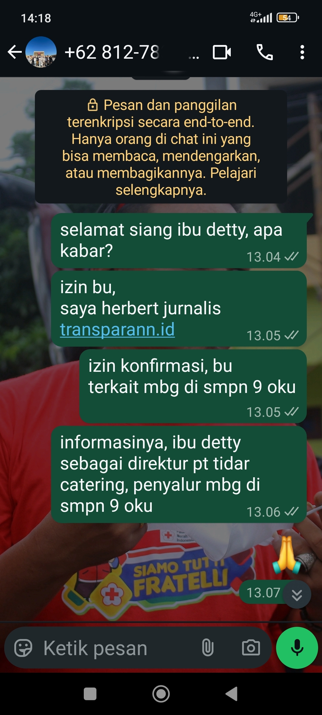 Hingga berita ini ditayangkan, Detty Ully Tirana, ditengarai sebagai owner PT Tidar Catering belum memberikan keterangan.