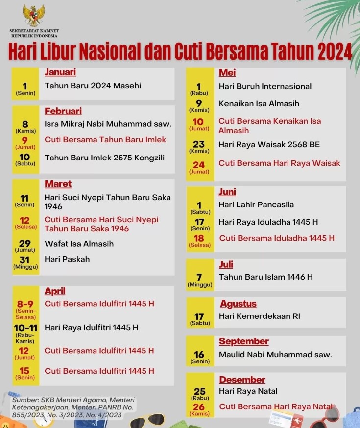TRANSPARANN – Pemerintah resmi menetapkan jadwal libur panjang untuk cuti bersama Lebaran 2025. Libur ini akan berlangsung mulai akhir Maret hingga awal April, memberikan kesempatan bagi masyarakat untuk merayakan Idul Fitri bersama keluarga. Keputusan ini tertuang dalam Surat Keputusan Bersama (SKB) tiga menteri yang mengatur hari libur nasional dan cuti bersama tahun 2025.