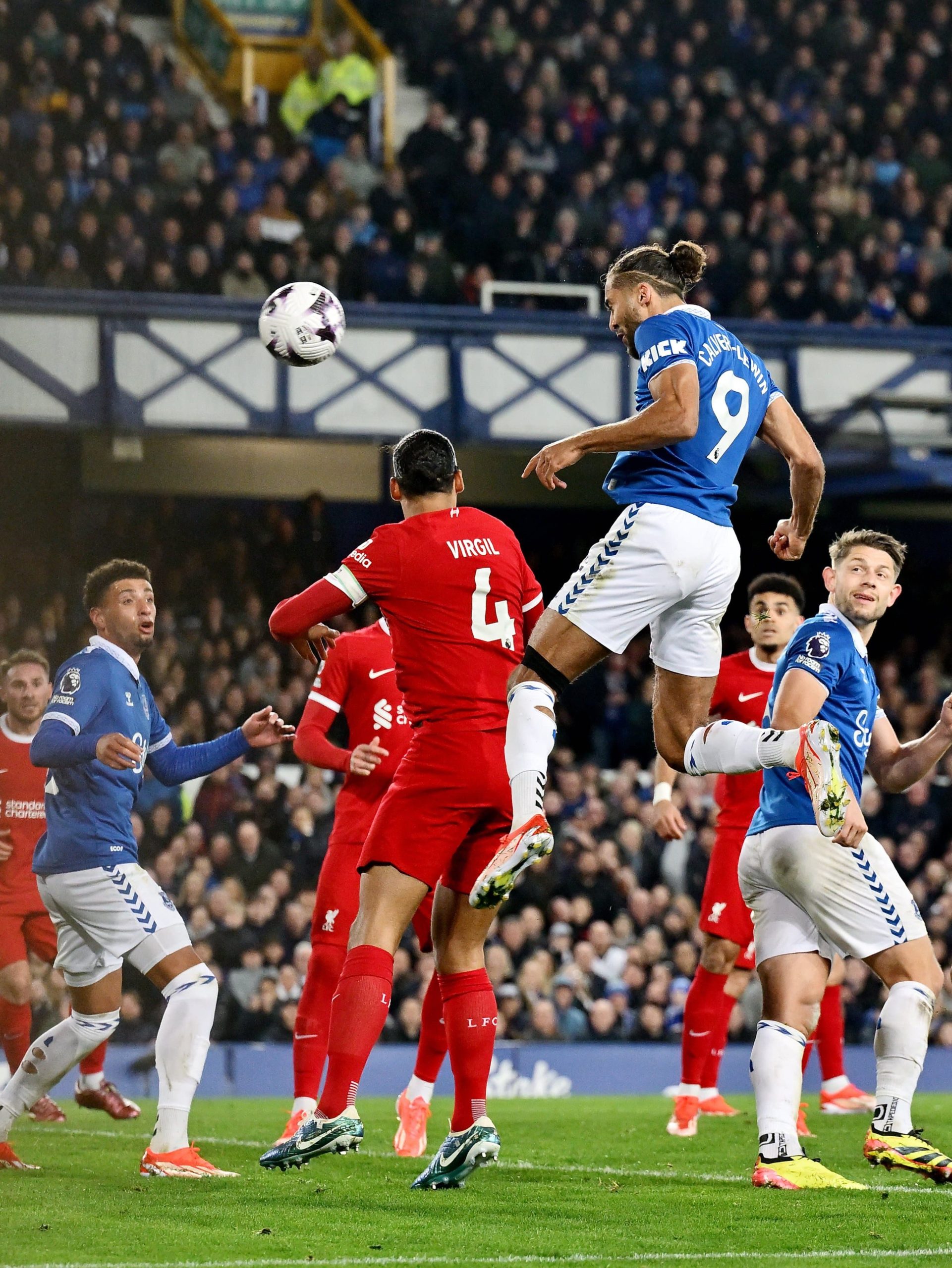 Everton menambah gol melalui sundulan Calvert-Lewin setelah sepak pojok (foto : Twitter.com/Everton)