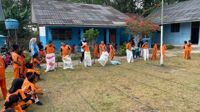LOMBA : Siswa SD Negeri 187 OKU yang mengikuti Lomba balap karung