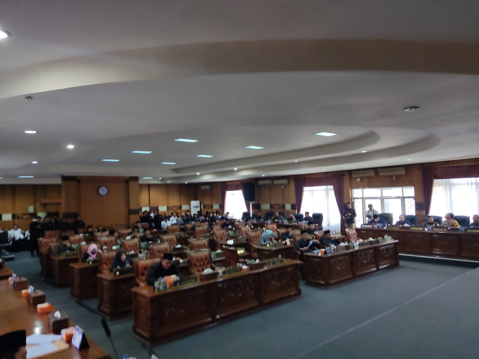 “Izin pimpinan, berdasarkan Tatib DPRD pasal 105 huruf b, disebutkan bahwa rapat paripurna memenuhi kuorum apabila dihadiri paling sedikit 2/3 dari jumlah anggota DPRD,” ucap Adip Kailani.