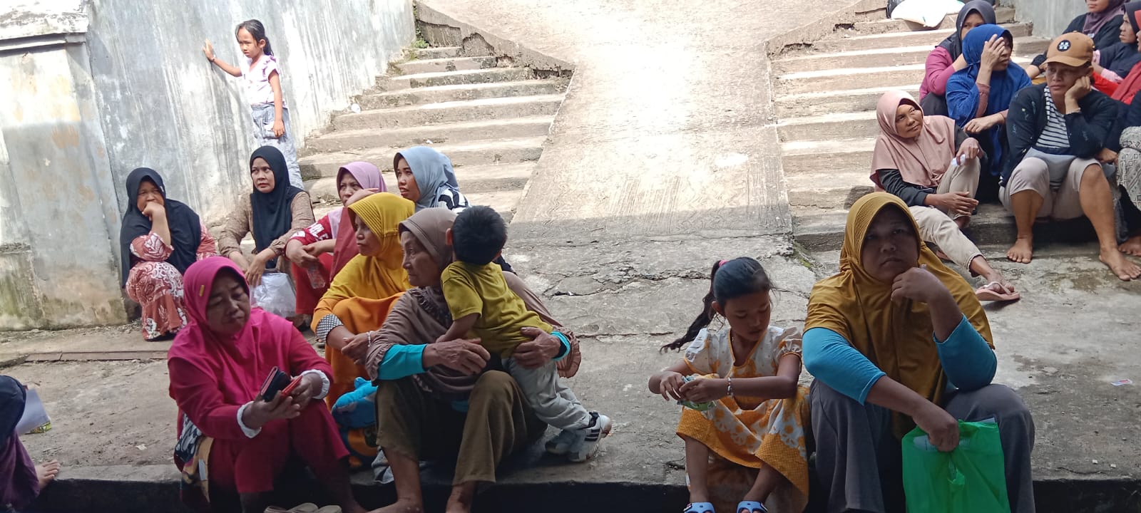 Masyarakat Desa Peninjauan, antrian menerima Bantuan Pangan Nasional, berupa 20 kg beras dan 4 liter minyak goreng, Kamis, 11 Desember 2025.