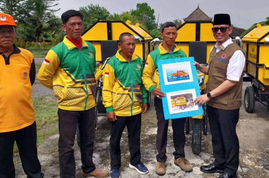 Bupati OKU, H Teddy Meilwansyah menyerahkan bak sampah kepada petugas sampah.