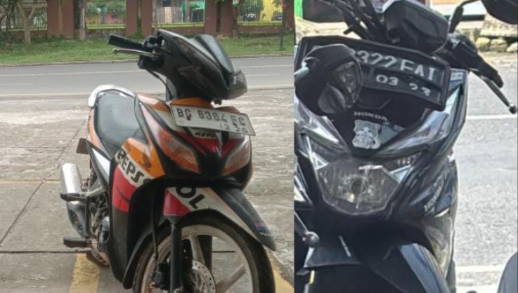 RAIB DIGASAK MALING : Dua unit sepeda motor milik wartawan di Baturaja Timur yang hilang dicuri dalam satu malam, Sabtu (8/2/2026). (Kiri) Honda Blade nopol BG 6364 FC milik Agus Maulana dan (Kanan) Honda Beat Street nopol BG 2322 FAI milik Rustam Effendi.