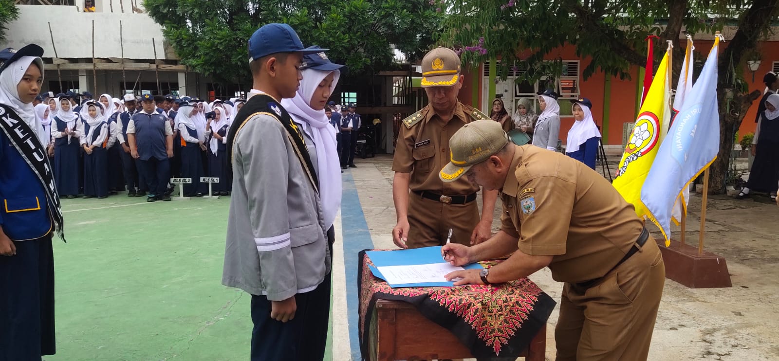 TRANSPARANN.COM, BATURAJA – Setelah diadakan pemilihan Ketua OSIS SMP Negeri 1 Kabupaten OKU, Jumat (17/11/2023) lalu, Hari ini, Senin (28/11/2023), Kepala SMP Negeri 1 Kabupaten OKU, Syaihon SPd MM melantik pengurus OSIS SMP Negeri 1 Kabupaten OKU periode 2023 – 2024.