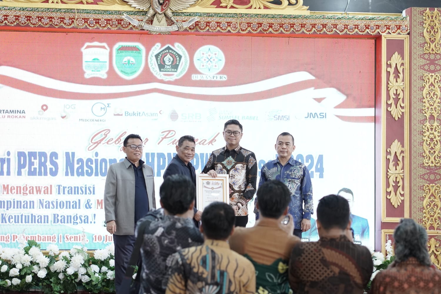 TRANSPARANN.COM, PALEMBANG – Puncak peringatan Hari Pers Nasional (HPN) Provinsi Sumsel tahun 2024, di Griya Agung Palembang, Senin (10/06/2024), Wakil Ketua DPRD Kabupaten OKU, Yudi Purna Nugraha, menerima penghargaan dari Persatuan Wartawan Indonesia (PWI) Propinsi Sumatera Selatan atas jasanya sebagai Mitra PWI.