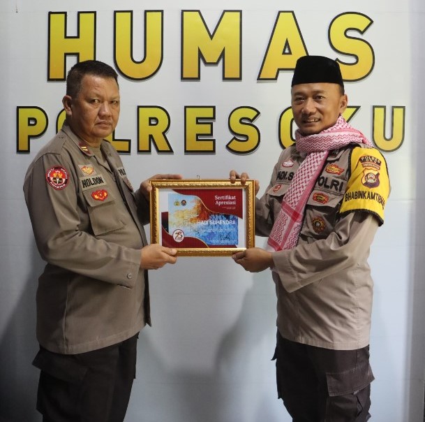 Personel Bhabinkamtibmas Polres OKU Terima Sertifikat Apresiasi