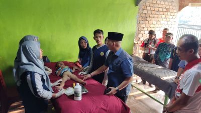 Didampingi Ketua Karang Taruna Tunas Baru Kelurahan Kemelak Bindung Langit, Dedi Arisandi, H Teddy Meilwansyah juga memberikan uang saku kepada anak – anak yang ikut sunatan massal.