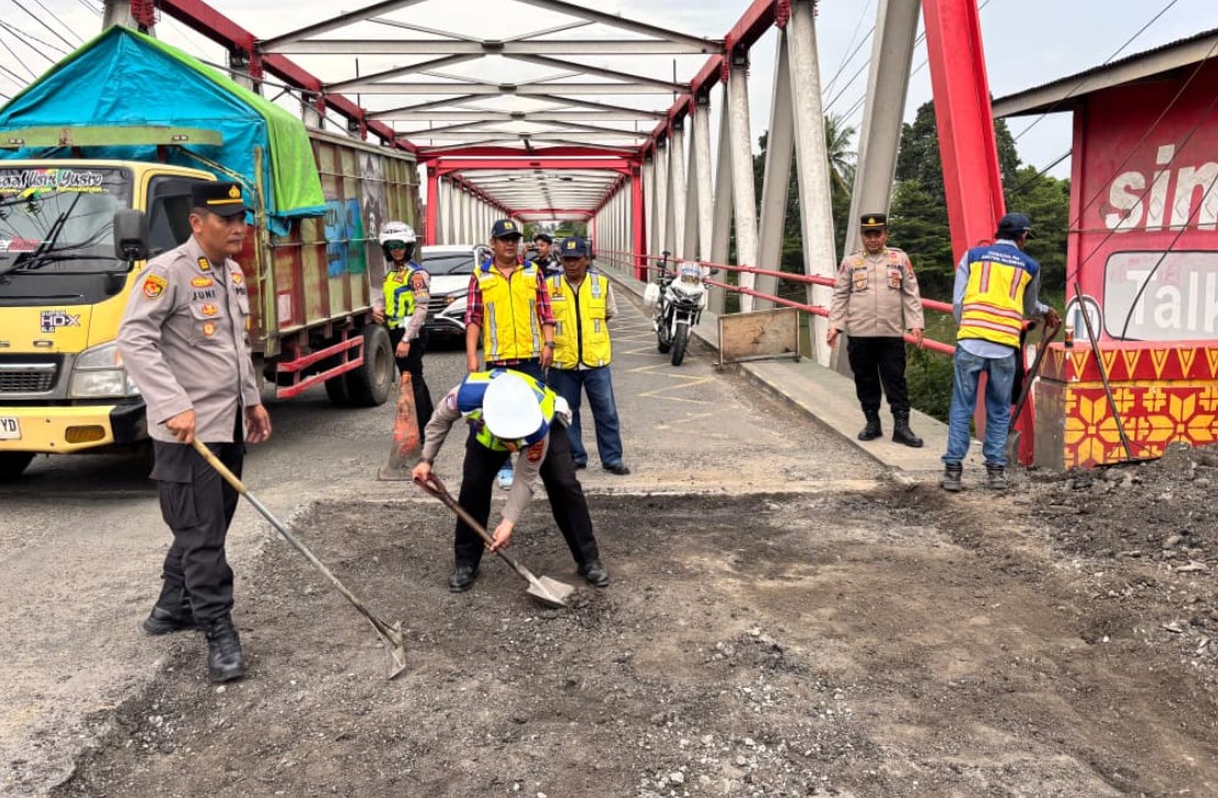 TRANSPARANN.ID, OKU – Polres OKU memperbaiki jalan berlubang di Jembatan Ogan 2 Sukajadi pada Jumat (6/3). Langkah ini bertujuan menjamin keselamatan warga menjelang Idul Fitri 1447 Hijriah.