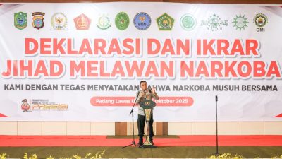 TRANSPARANN.ID, PADANG LAWAS UTARA – Polres Tapanuli Selatan (Tapsel) memimpin deklarasi dan operasi penyakit masyarakat (Pekat) bertajuk Jihad Melawan Narkoba di Ballroom Hotel Sapadia Gunung Tua, Selasa (7/10/2025). Kapolres Tapsel, AKBP Yon Edi Winara, SH, SIK, MH, memimpin langsung kegiatan yang menggandeng Forkopimda Paluta, tokoh agama, dan masyarakat.