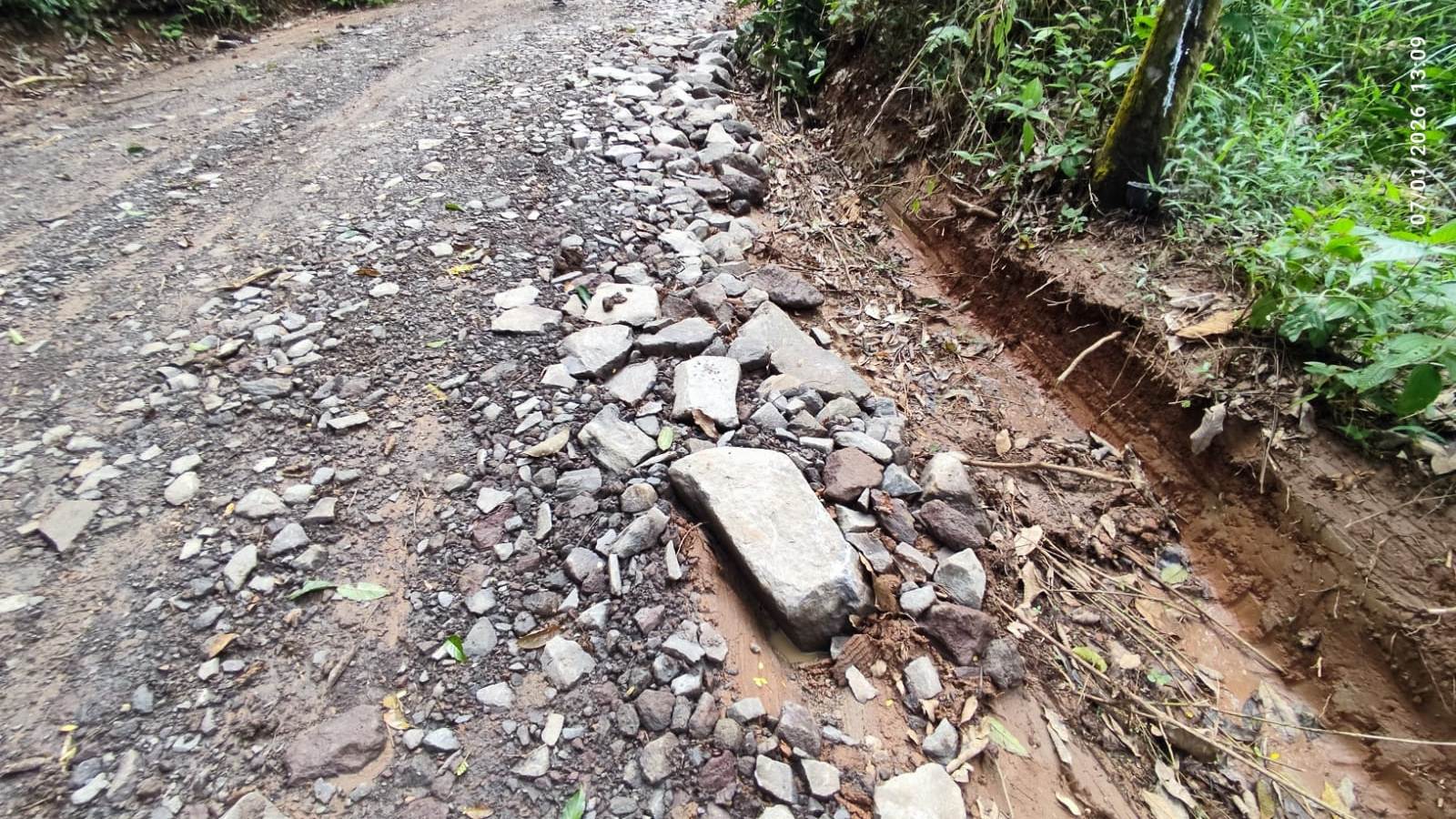 “Kami sangat kecewa,” umpat ZP penuh emosi. Ia menuding kontraktor bekerja asal-asalan. Batu hamparan terlihat jelas bercampur tanah dan pasir.