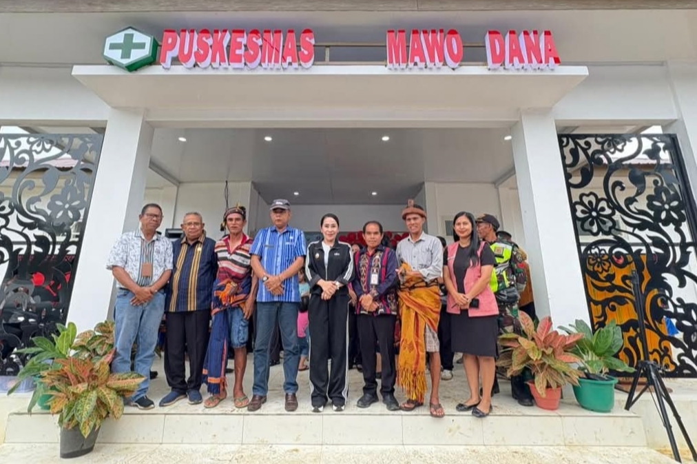 Bupati Ratu Ngadu Bonnu Wulla melangkah menembus cuaca dingin. Ia meresmikan Puskesmas Mawo Dana pada Jumat (13/02/2026).