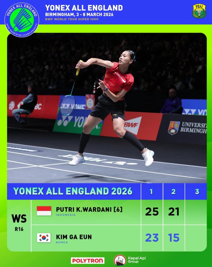 TRANSPARANN.ID – Pebulu tangkis tunggal putri Indonesia, Putri Kusuma Wardani, sukses mengamankan tiket perempat final All England 2026.