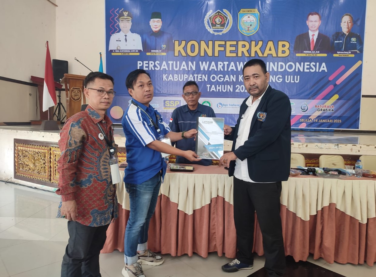 TRANSPARANN.COM – Persatuan Wartawan Indonesia (PWI) Kabupaten Ogan Komering Ulu (OKU) sukses menyelenggarakan Konferensi Kabupaten (Konferkab) di Gedung Sanggar Kegiatan Baturaja (SKB) pada Selasa, 14 Januari 2025. Acara rutin tiga tahunan ini bertujuan memilih pengurus baru periode 2025–2028 serta memperkuat organisasi.
