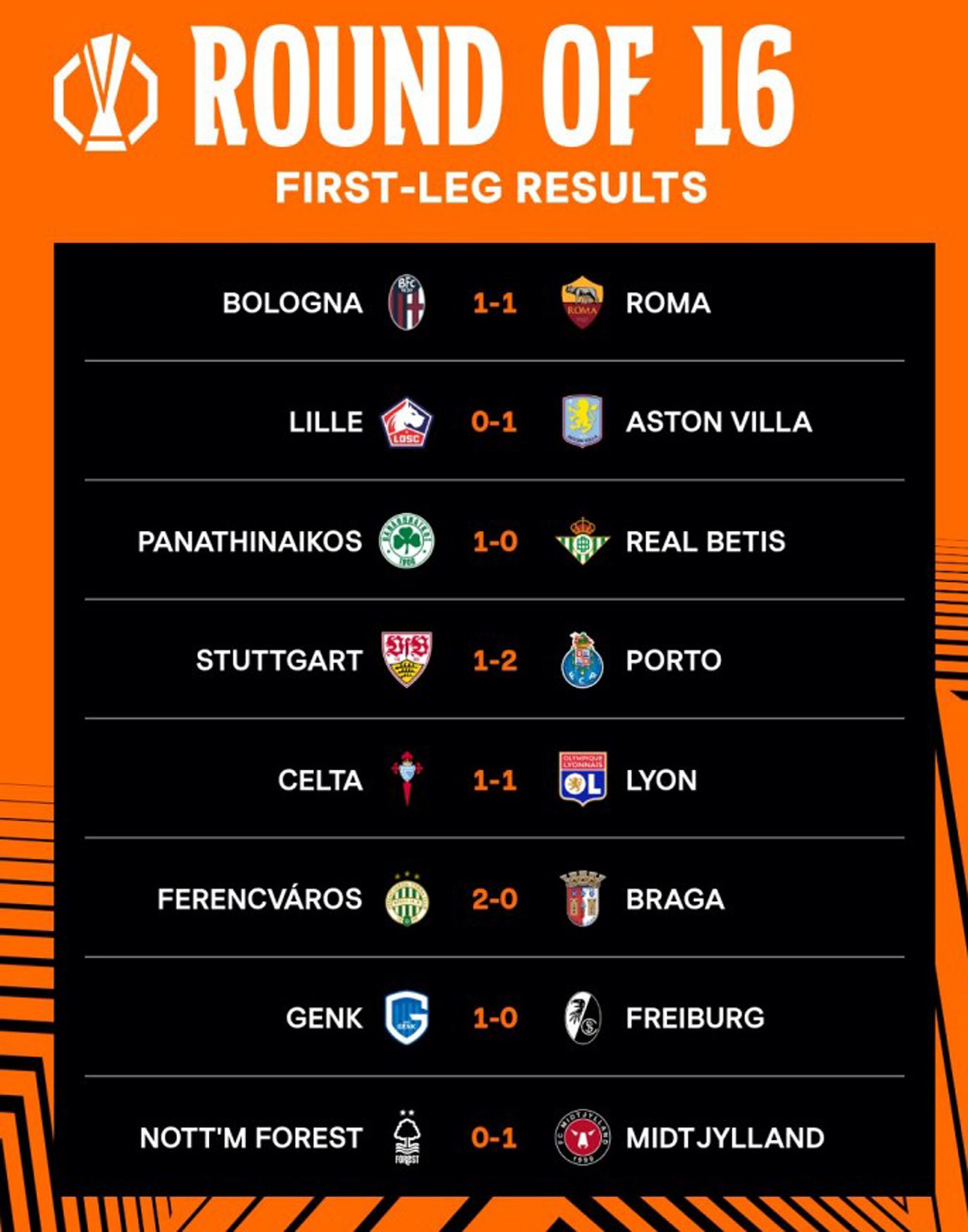 ### Rekap Leg 1 Babak 16 Besar Liga Europa