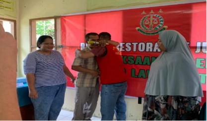 Tersangka Riswan Efendy dan korban Erikson Pardosi sepakat berdamai setelah menjalani proses mediasi di Rumah Restorative Justice Kejari Paluta.