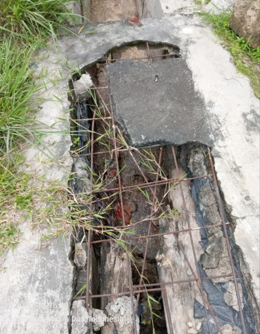 Kondisi saluran pembuangan di Kecamatan Muara Dua. Infrastruktur yang rusak, terbuka, dan digenangi air berwarna gelap ini diduga menjadi jalur pembuangan limbah Dapur MBG yang dikeluhkan warga menimbulkan bau menyengat.