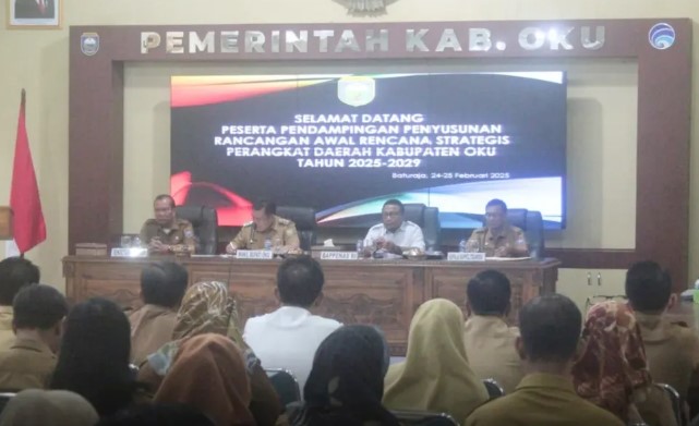 Rapat pendampingan penyusunan rancangan awal Rencana Strategis (Renstra) Perangkat Daerah OKU 2025-2029, Senin, 24 Februari 2025.